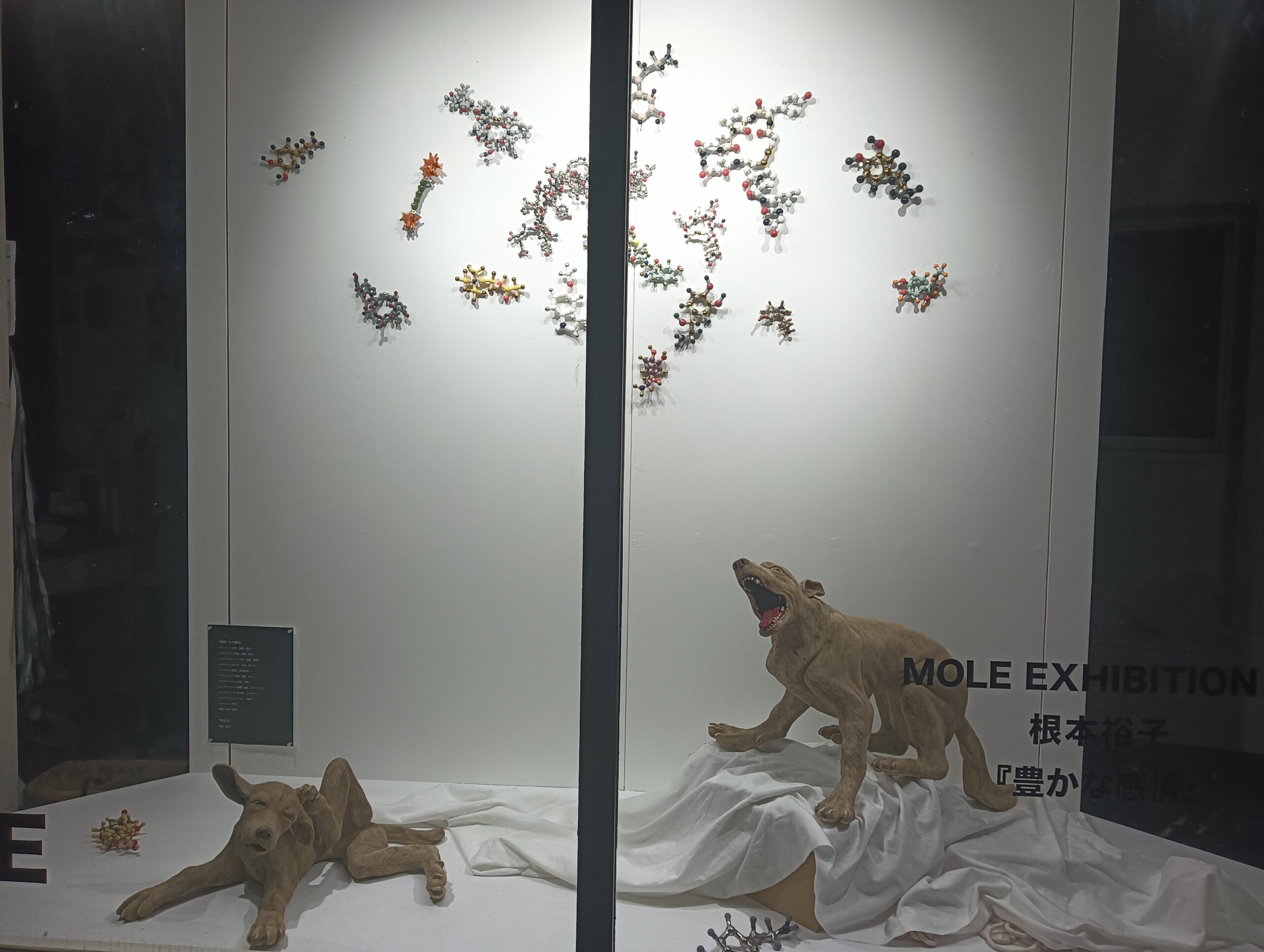 根本裕子さんの焼き物作品がウィンドウギャラリーで展示中です。1月中旬までです。